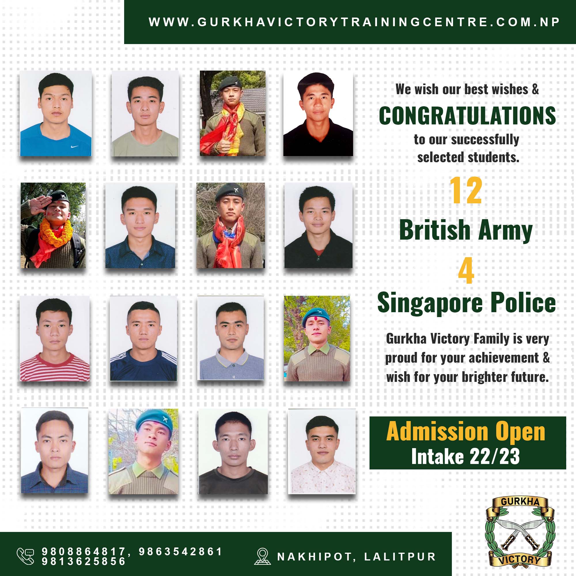 12 Selected in British Army and 4 selected in Singapore Police Force