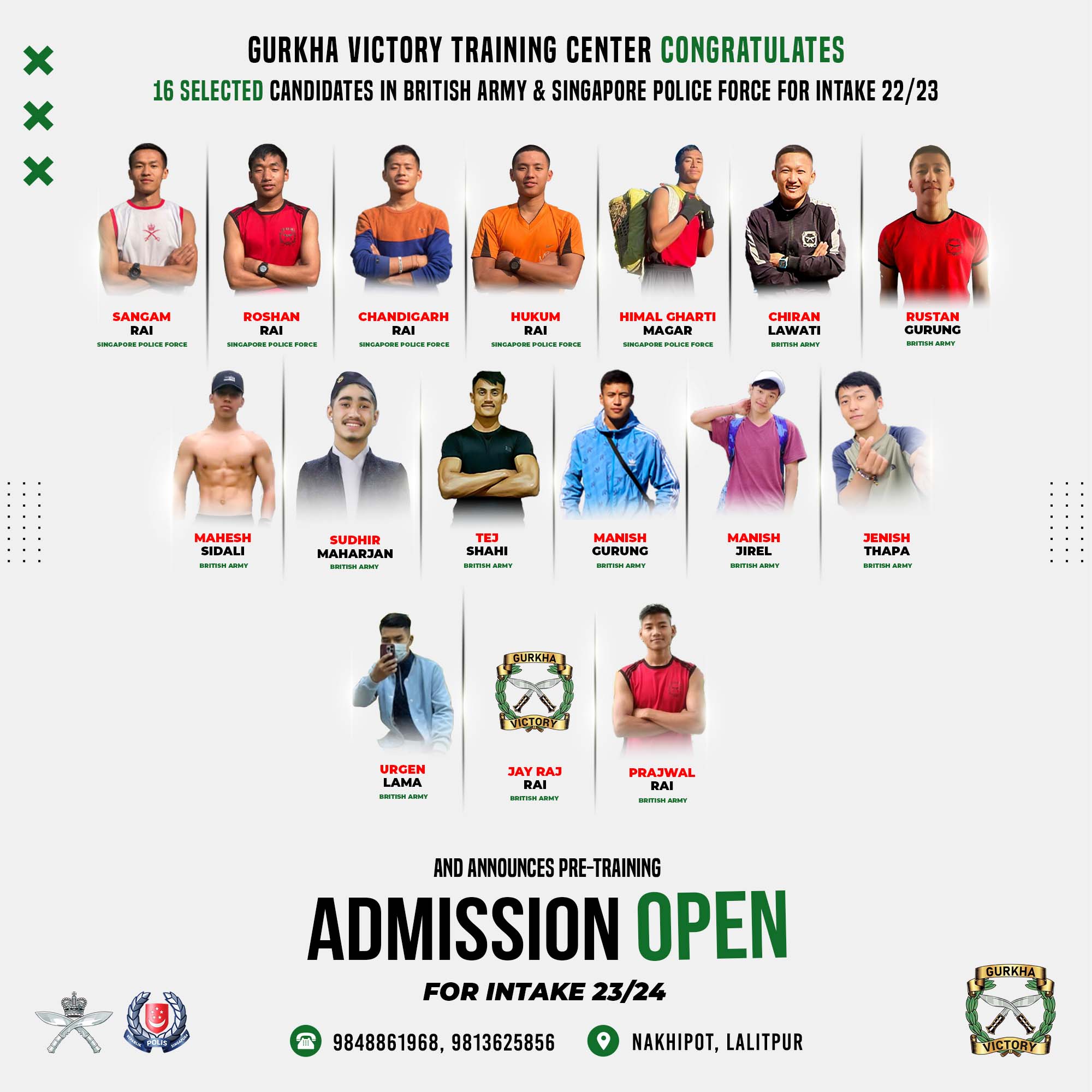 11 Selected in British Army and 5 selected in Singapore Police Force